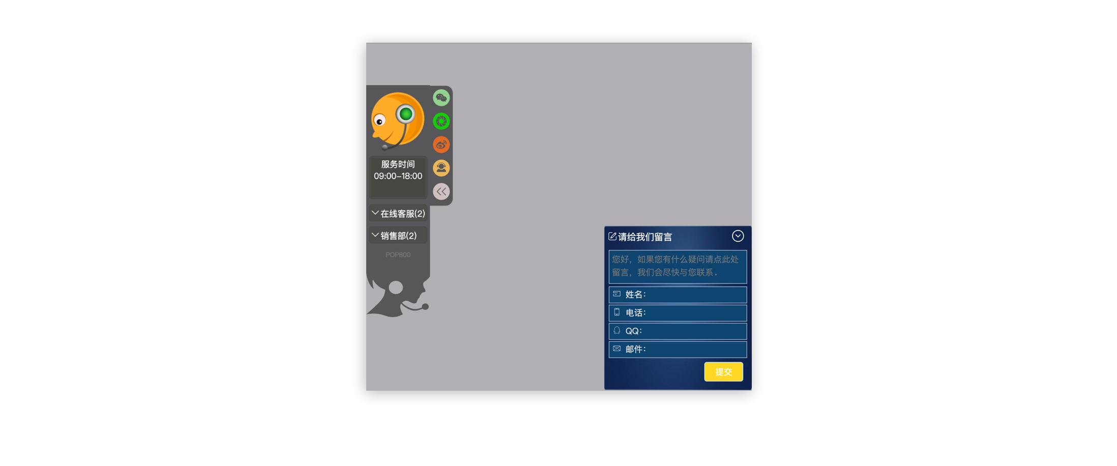 POP800可通過網站、微信、APP、小程序、微博、阿里旺旺、QQ等任意渠道接入。系統智能支持:多樣式選擇、多路由接入、多業務整合、多角色監控、多維度分析,多平臺統一管理。